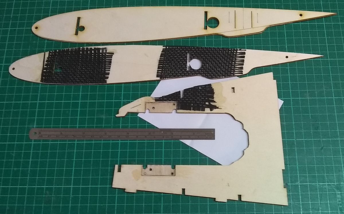 The root ribs are reinforced with carbon cloth on the inside around where the wing supports and undercarriage supports fit.